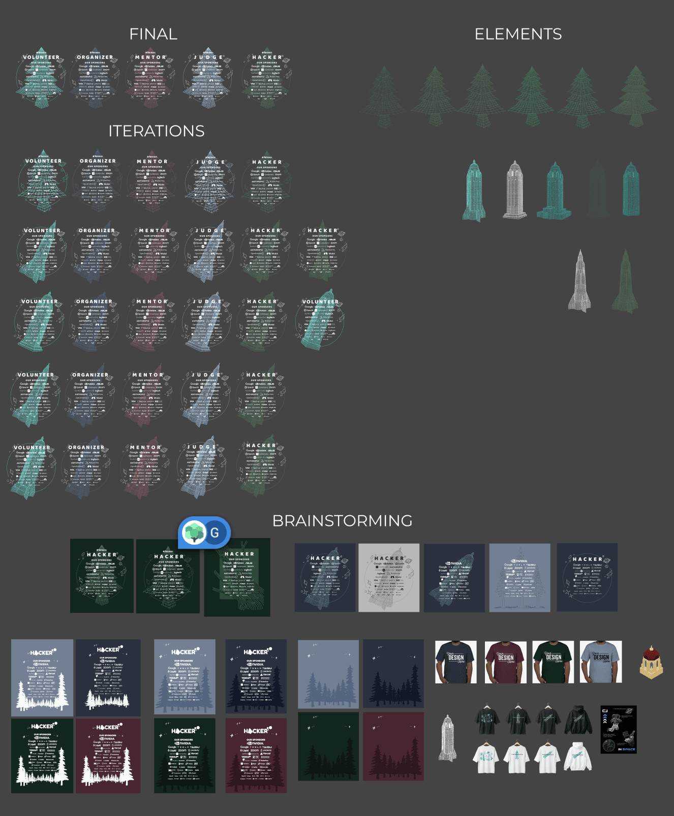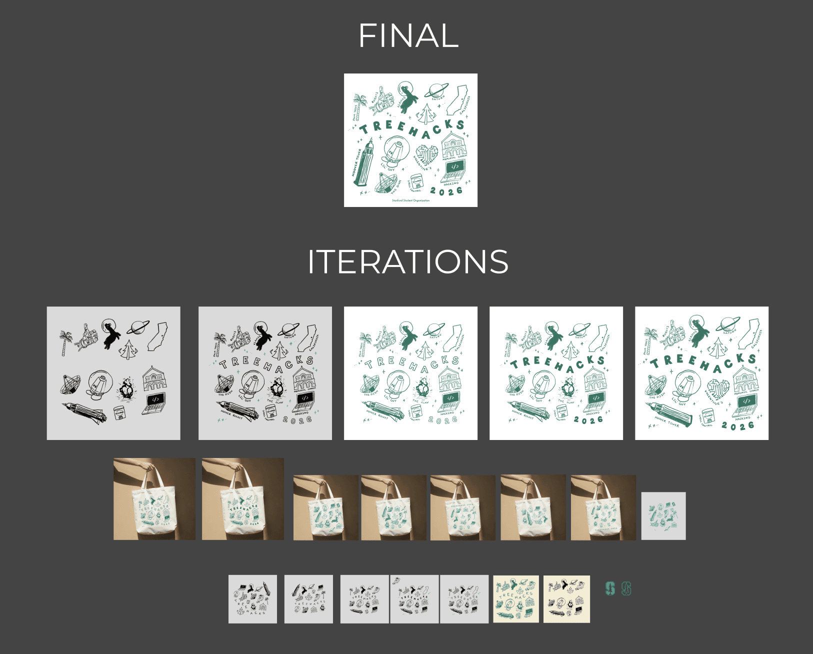 During my frosh fall, I designed an extensive collection of custom merchandise and online advertisements for one of the largest Hackathons in the world: Treehacks at Stanford University.